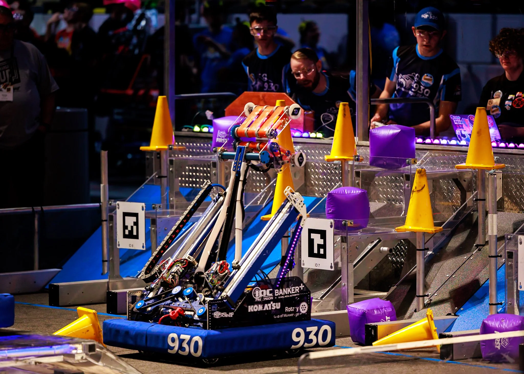 Completing alliance selection, Team 930 with the overall first pick selected 8096 (Cache Money) and 8029 (Steel Bronco Robotics) as their second pick. Walking into the first round of the elimination bracket the team was up for an intense match against the 8th seed alliance. Despite some unfortunate luck of one of our elevator belts coming loose, we still put up a close match but lost 127-133, knocking us down to the lower bracket. With some amazing quick fixes from our pit crew team, we walked into our next match ready for anything. With a hard fought match from the 5th seed alliance, Team 930 along with their amazing partners came out on top setting a playoff high score, winning 152-99. Against the second seed alliance, our alliance was ready for an intense match. However, our alliance partner was hit with an unfortunate break causing them to spend the majority of the match on 3 wheels. The match would result in a loss and the end of our elims run, but the team was so proud of all the amazing progress we made and are very grateful for our alliance partners' continued perseverance!